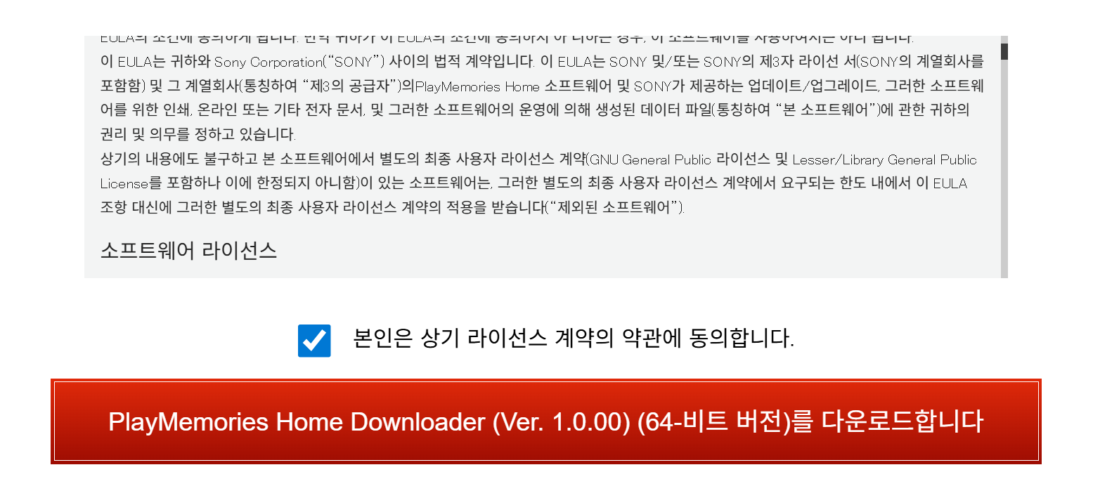 다운로드한 PlayMemories Home을 실행시키면 다음과 같은 창이 뜨는데요.