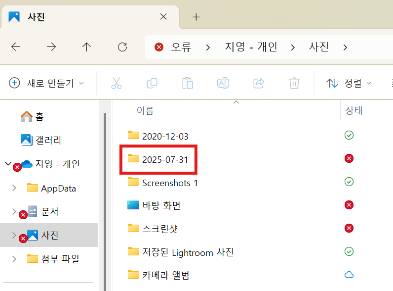 사진 전송이 끝나면 [사진]에서 새로운 폴더가 생성된 것을 볼 수 있습니다