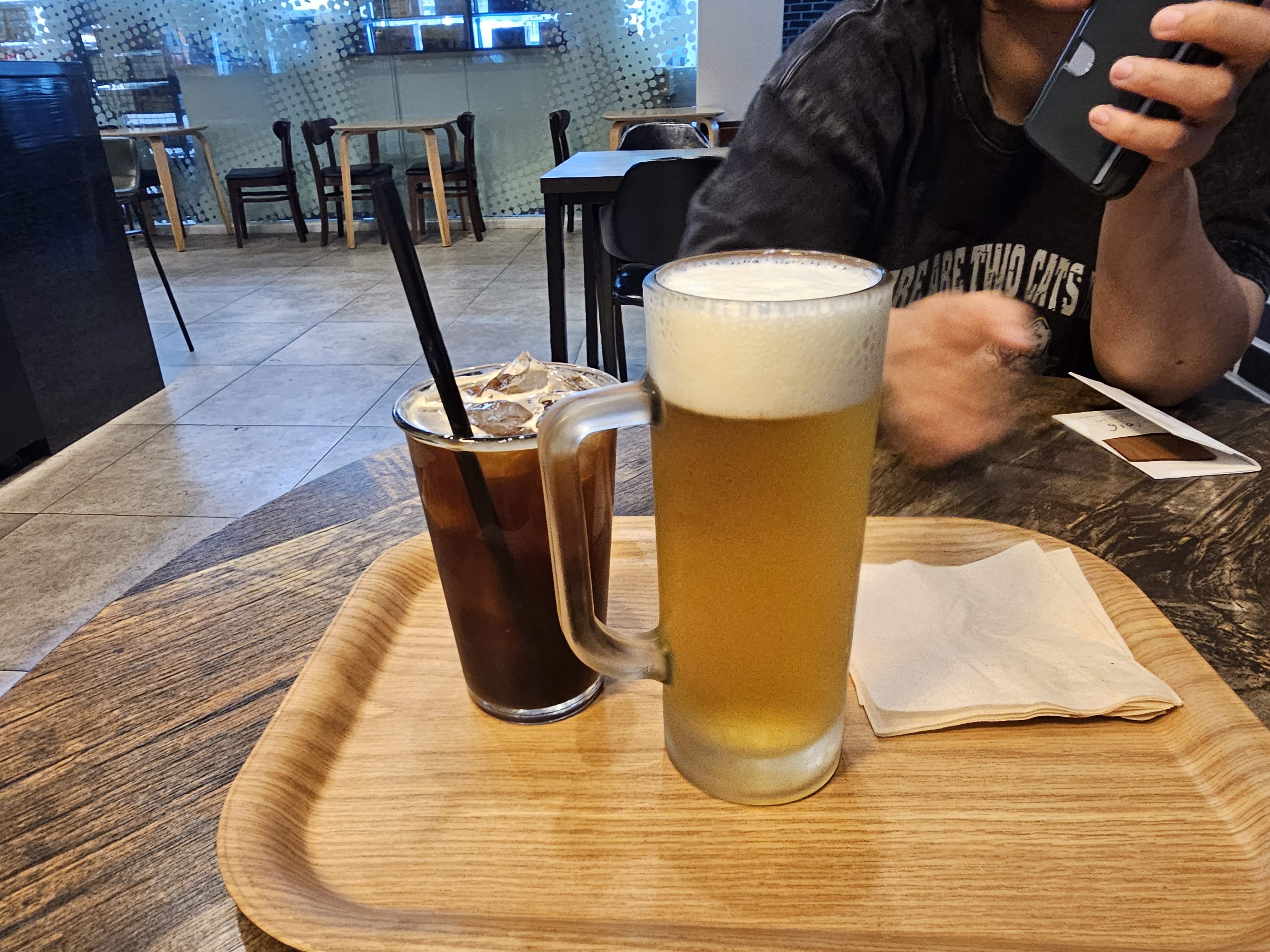 맥주와 커피, 아이스티 등 여러가지 고를 수 있었고, 저녁이었지만 안전운전을 위해 커피를 마시며 피로를 풀어줬어요