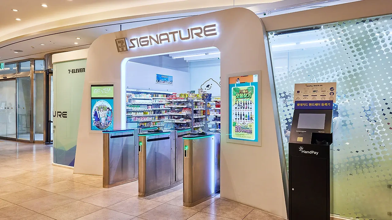 로비에는 음료나 디저트를 즐길 수 있는 라운지바와 함께 세븐일레븐 편의점이 있었습니다.