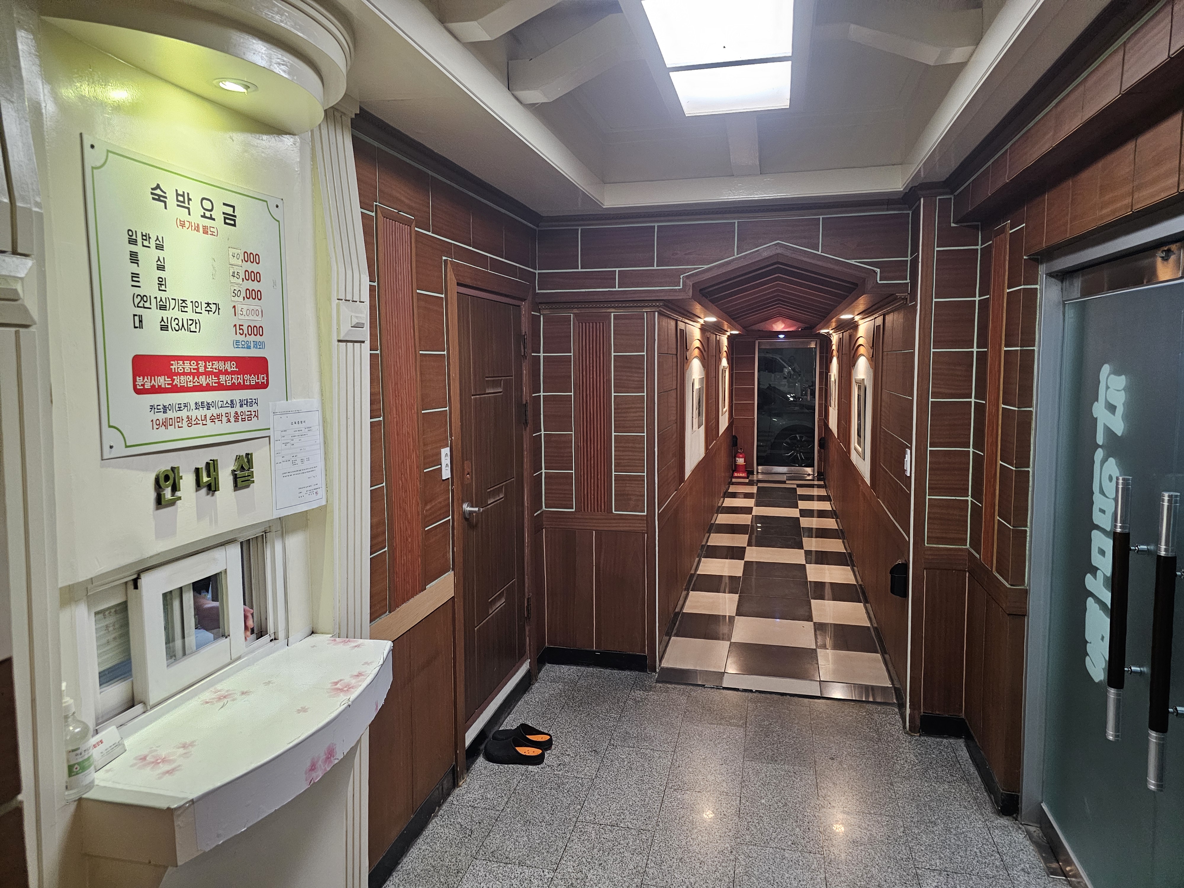 호텔에 입실하니 올드한 분위기의 모텔 로비, 새벽 열두시에 들어가면서 너무 늦어서 어쩌지 걱정했는데 사장이모는 키와 함께 세면용품을 직접 건내주셨다. 모텔을 갈 일이 적었던지라 치약, 칫솔은 항상 챙기고 다녔었는데 세면용품을 풀로 받은 건 정말 오랜만이었다. 사장 이모는 친절한 편이었으나, 남편은 주차 때문에 살짝 마음이 상했던 (그래도 다음날 미안하다 하심)