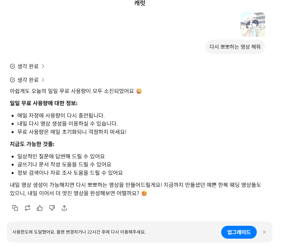 한 영상당 5초씩, 그리고 4번 정도 사용하니 24시간 뒤에 다시 이용할 수 있게 되었더라고요~