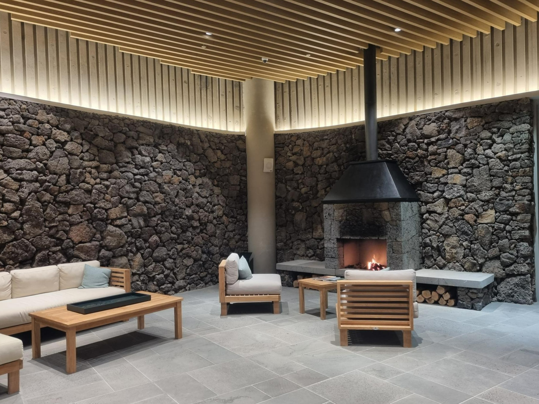 겨울밤에 방문했던 스타빌은 굉장히 추웠다. 한라산 깊숙이 있어서 차를 가지고 구불구불한 산길을 깊게 들어갔다. 주차를 한 뒤에 로비로 들어왔는데 따뜻한 벽란도와 돌로 쌓여진 벽에서 보기만 해도 따뜻함이 느껴졌다. 프론트 로비는 늦은 밤까지 직원분들이 맞이해주고 있었고 체크인을 진행했다.