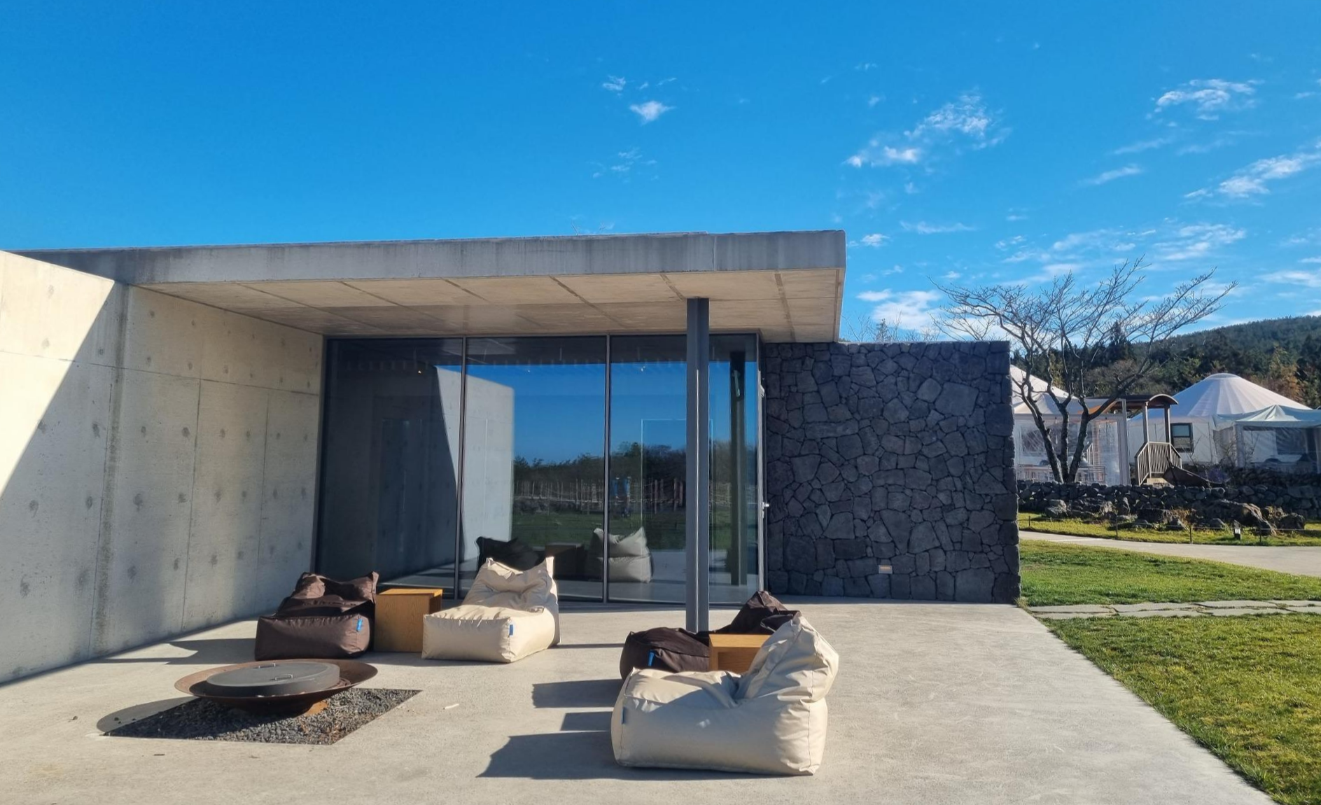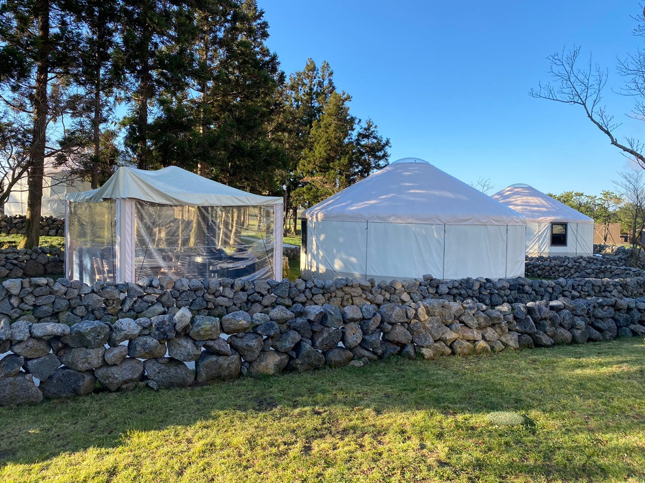 스타빌 안에 숙소는 텐트형과 돔형으로 구성되어 있으며, 돌담으로 이루어진 울타리로 하나의 마을을 연상시킨다. 돔형 몽골텐트 글램핑 한 번쯤 가보고 싶었는데 마침 기회가 닿았던 거 같다. 낮과 밤에 확연히 다른 분위기를 가지고 있는 스타빌은 조용한 분위기 속에 여유로운 기분을 느끼게 해준다.