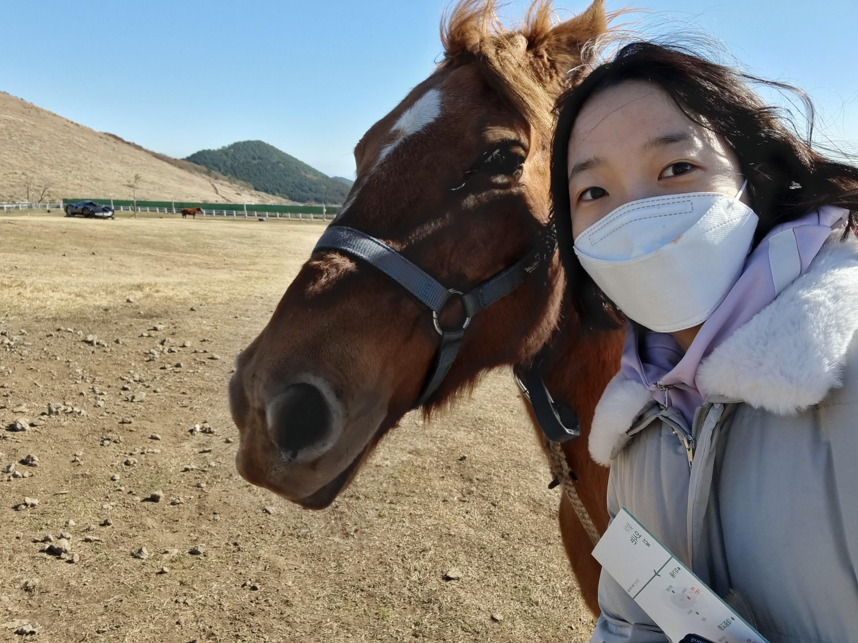 제주하면 역시 말이 아니겠는가? 옆에 살포시 가서 셀카를 내미니 얌전하게 카메라를 같이 봐준다. 덕분에 멋진 셀카 한 장 건질 수 있었다.