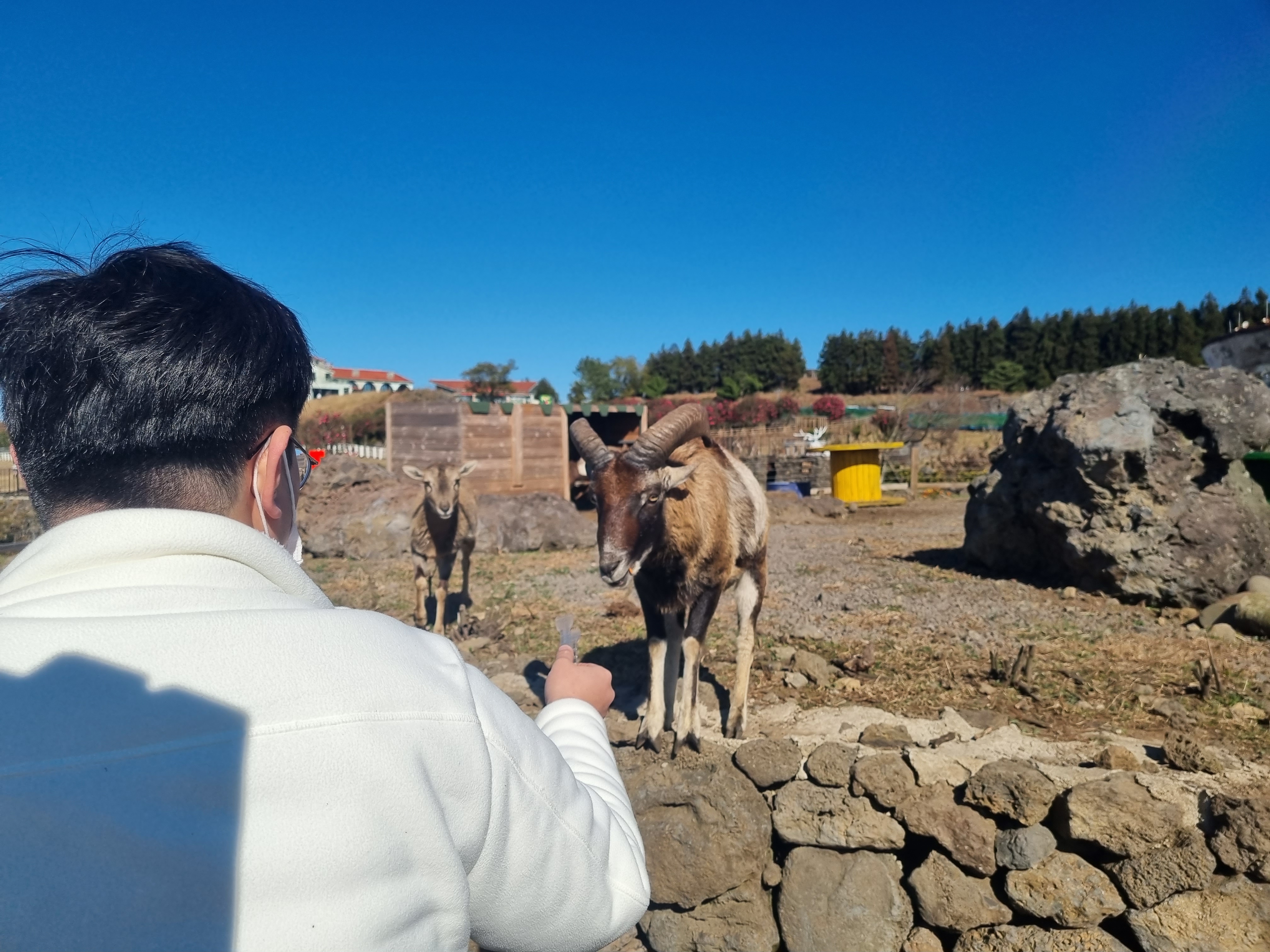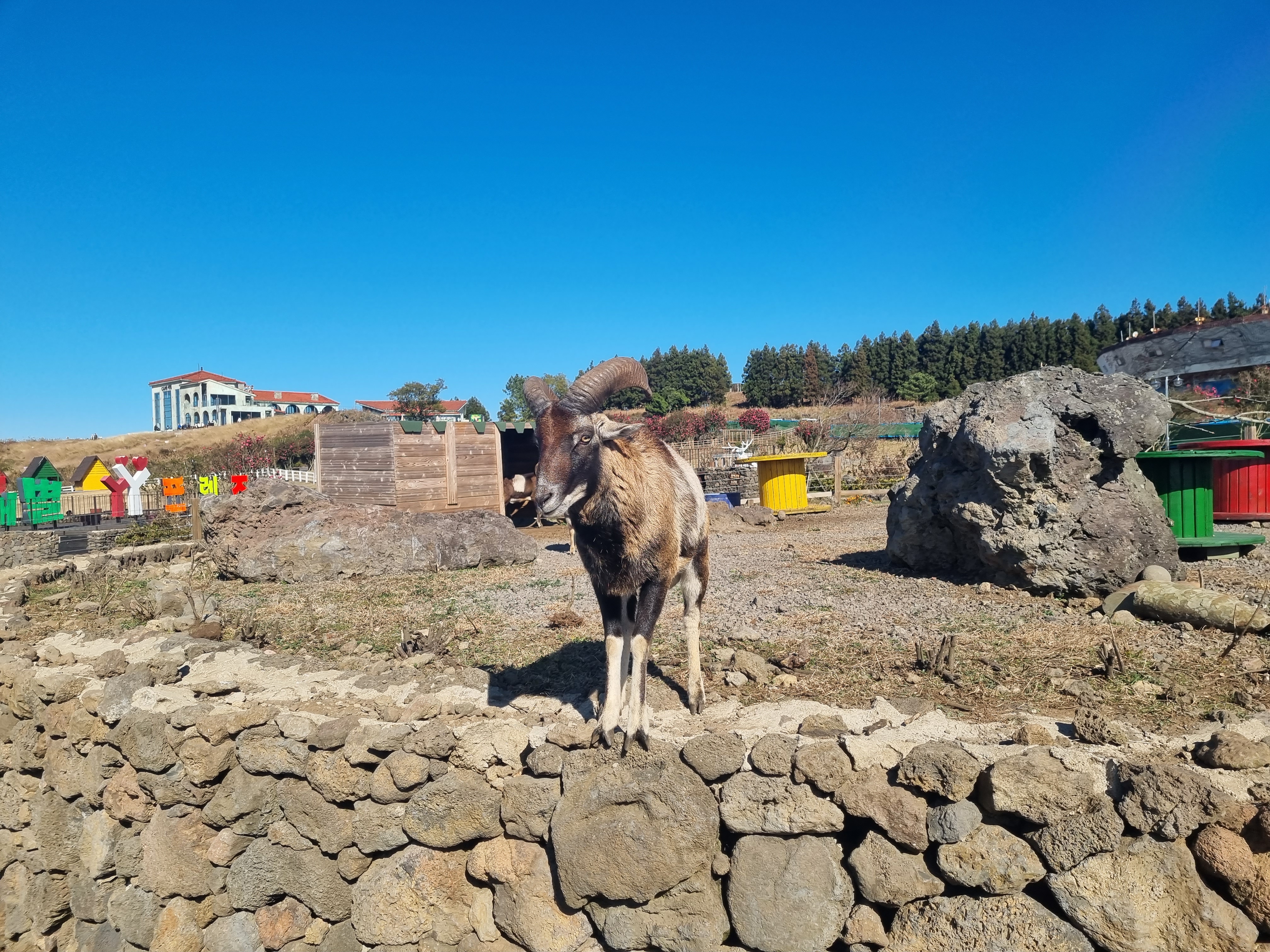 뿔이 으리으리한 산양, 예전에 주타이쿤을 할 때에 성격이 포악했던 거 같아서 조심스러웠는데 오빠가 용기 내서 다가가니 사뿐히 당근을 먹으러 왔다. 꽤 높은 언덕 위에 있는데도 우리가 인사하고 가니까 절벽에서 뛰어내려서 당근을 내놓으라 했던 산양.