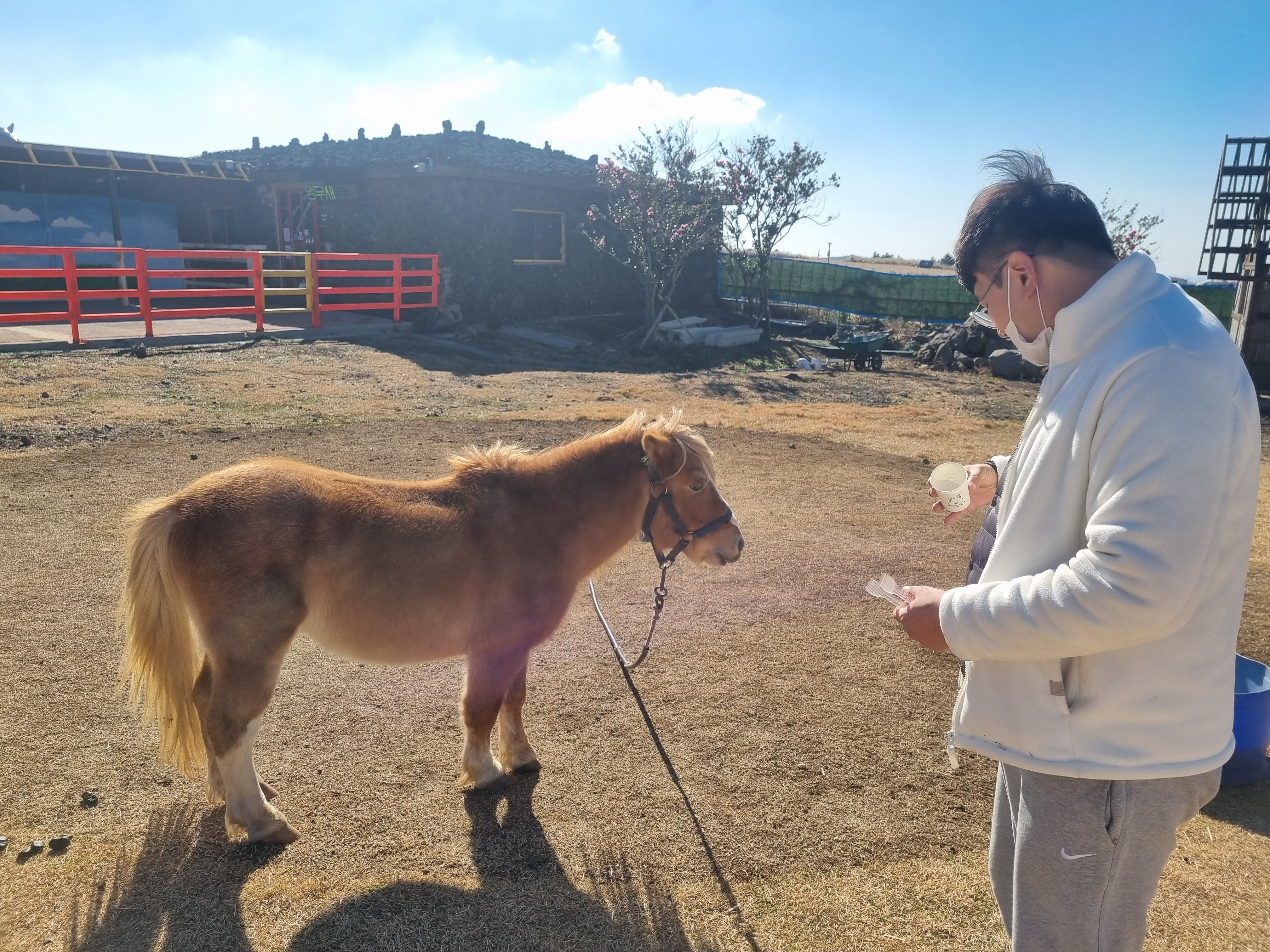 얘네들은 작은 말 포니이다. 먹이를 보고 달려와서 얼굴을 내밀고 있다. 오빠가 먹이를 주고 있는 중에 나는 또 사진 한 장을 건졌다.