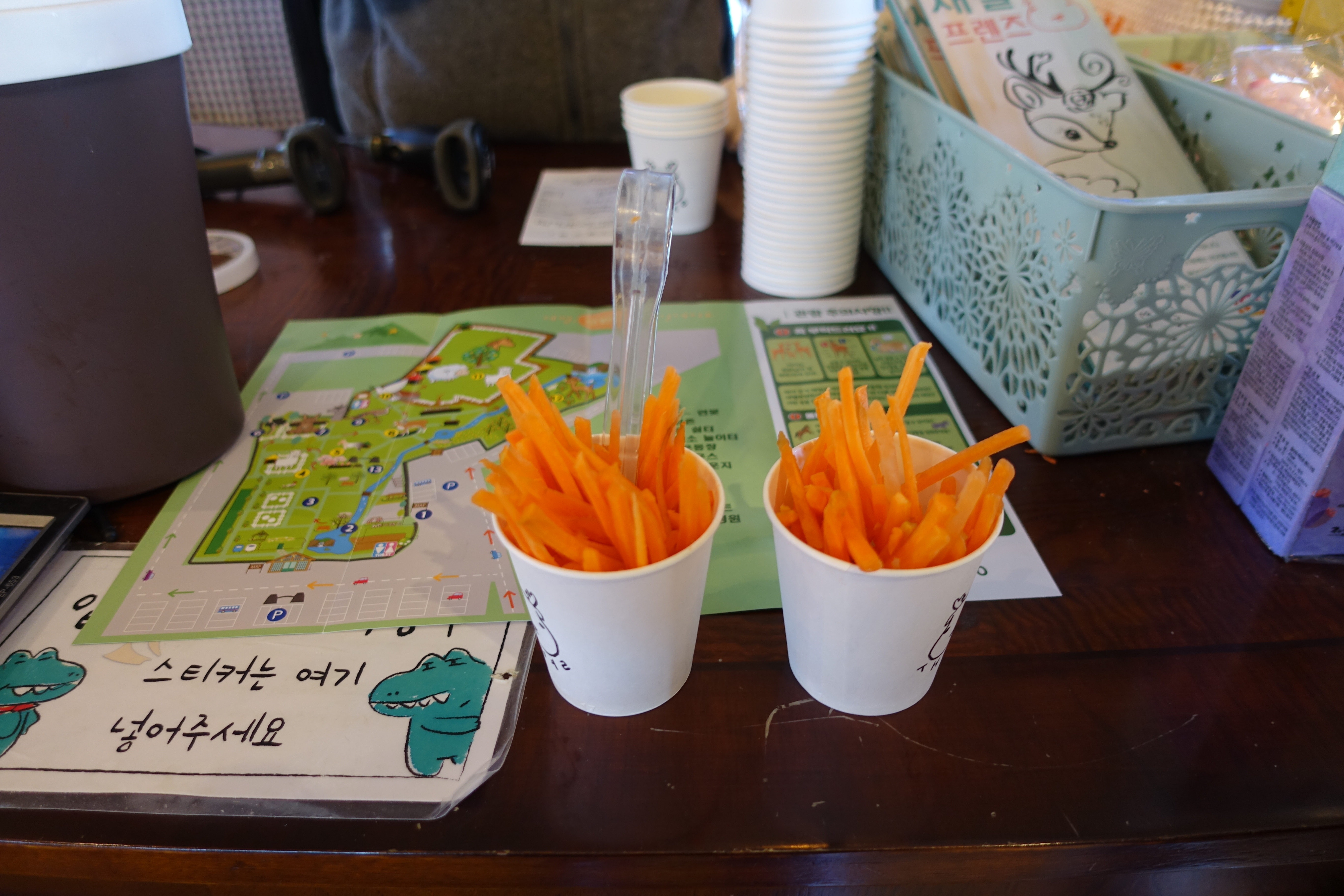 대다수가 초식동물들이라 당근을 준 줄 알았는데 강아지한테도 당근을 주니 먹었다. 생각해보면 애완견들 과일 먹는 경우도 있다는데 실제로 당근 먹는 개를 보니 신기하다.