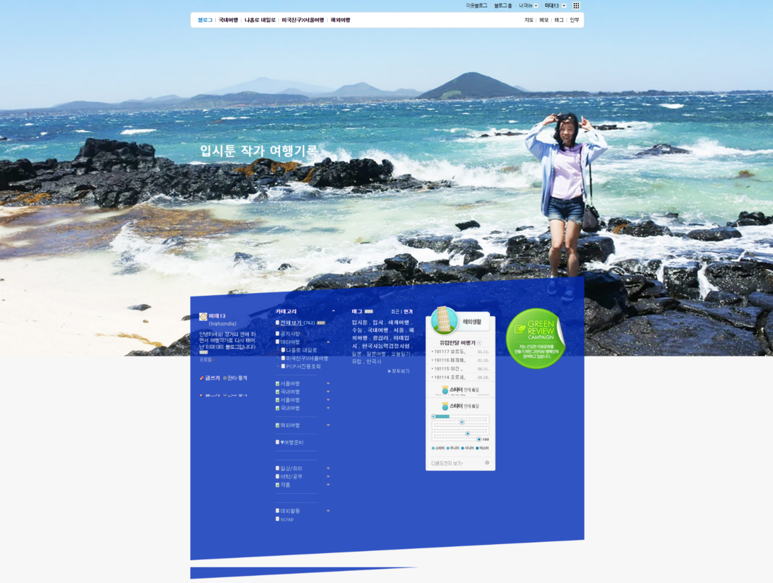 이후 스킨이랑 카테고리 작업을 했다. 본래 여행 테마에 맞게 작업을 해둔 것들도 있고 그냥 국내여행 안에 통째로 넣어버린 것들도 있었다. 작업을 하는 데에 꽤 걸렸고 스킨을 다시 해보려니 고민이 많이 되었다. 아무튼 여행 인플루언서로써의 준비는 끝!